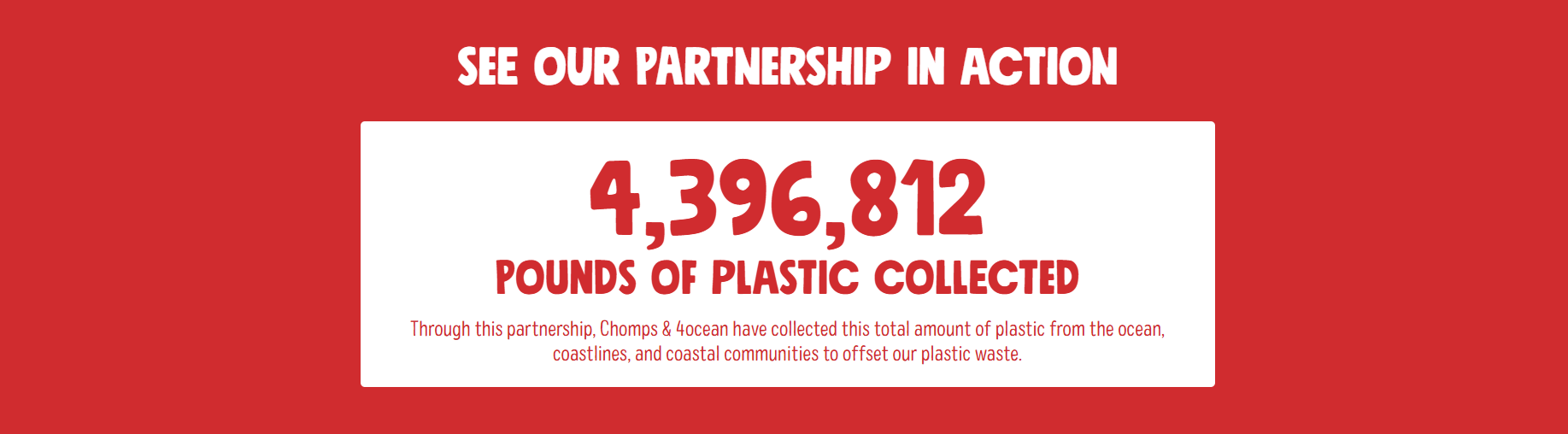 Through this partnership, for every pound of plastic used in Chomps packaging, one pound of plastic will be removed from the ocean, coastlines, and coastal communities.